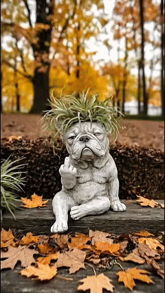 This isnāt your average garden gnome ā itās a showstopping bulldog statue with a hilarious, unapologetic middle finger gesture: